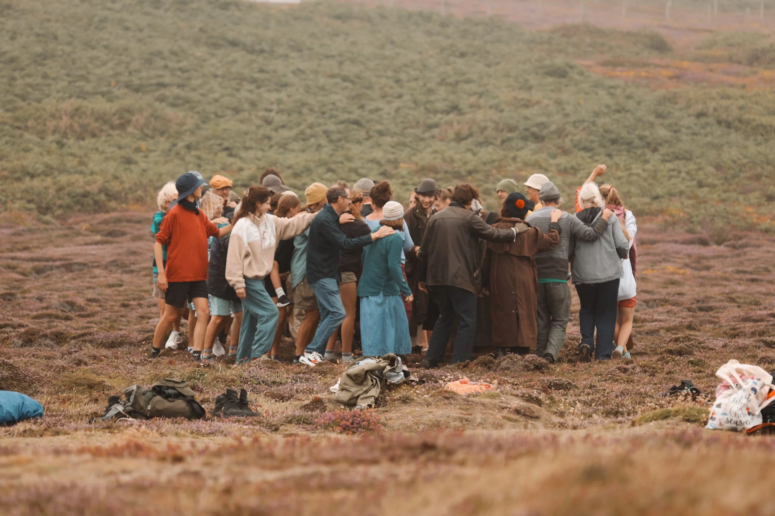 A traditional Cornish “Snail Creep” spiralling dance is performed, joined in by the event attendees.