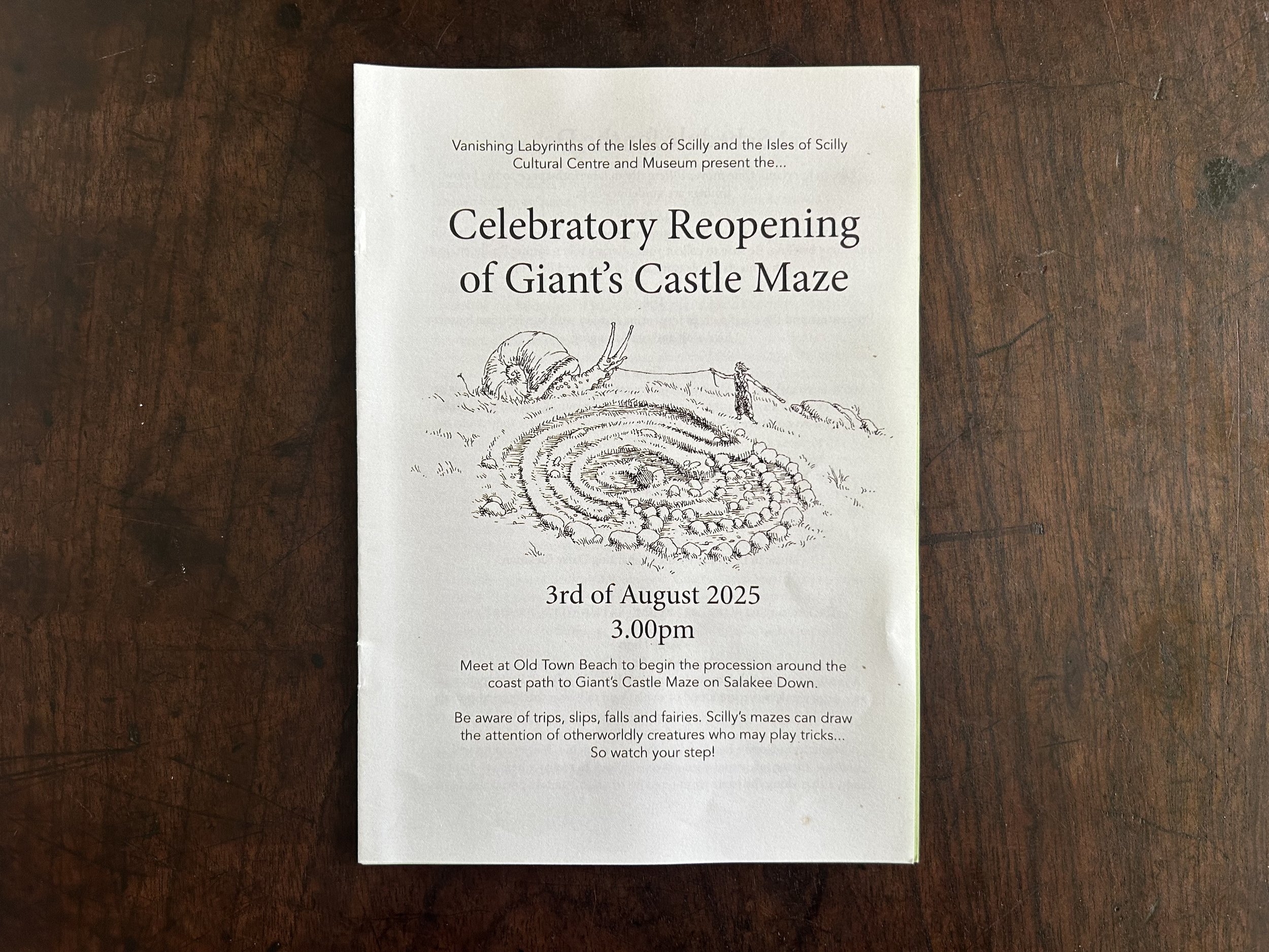 After the successful restoration of Giant’s Castle Maze, we wanted to do something to celebrate this special site, and mark its “reopening” as a usable labyrinth again. Scilly is rich in ancient sites and relics which, like the labyrinths, hint at deeper, more spiritual and culturally significant meanings and belief systems held by the islanders of the past. These places ignite sparks of imagination in all of us - wondering what their purpose could have been, who made them and why. Elsewhere in the country there are often songs, folk tales or annual ceremonies that help to answer these questions. This oral and ritual tradition gives voice to cultural identities of the past, preserving beliefs and meaningful folk connection with the land, and sites like the labyrinths. This is particularly important for poorer, rural places - as Scilly would have been - where most people were illiterate and unable to write down their own histories or mythologies.