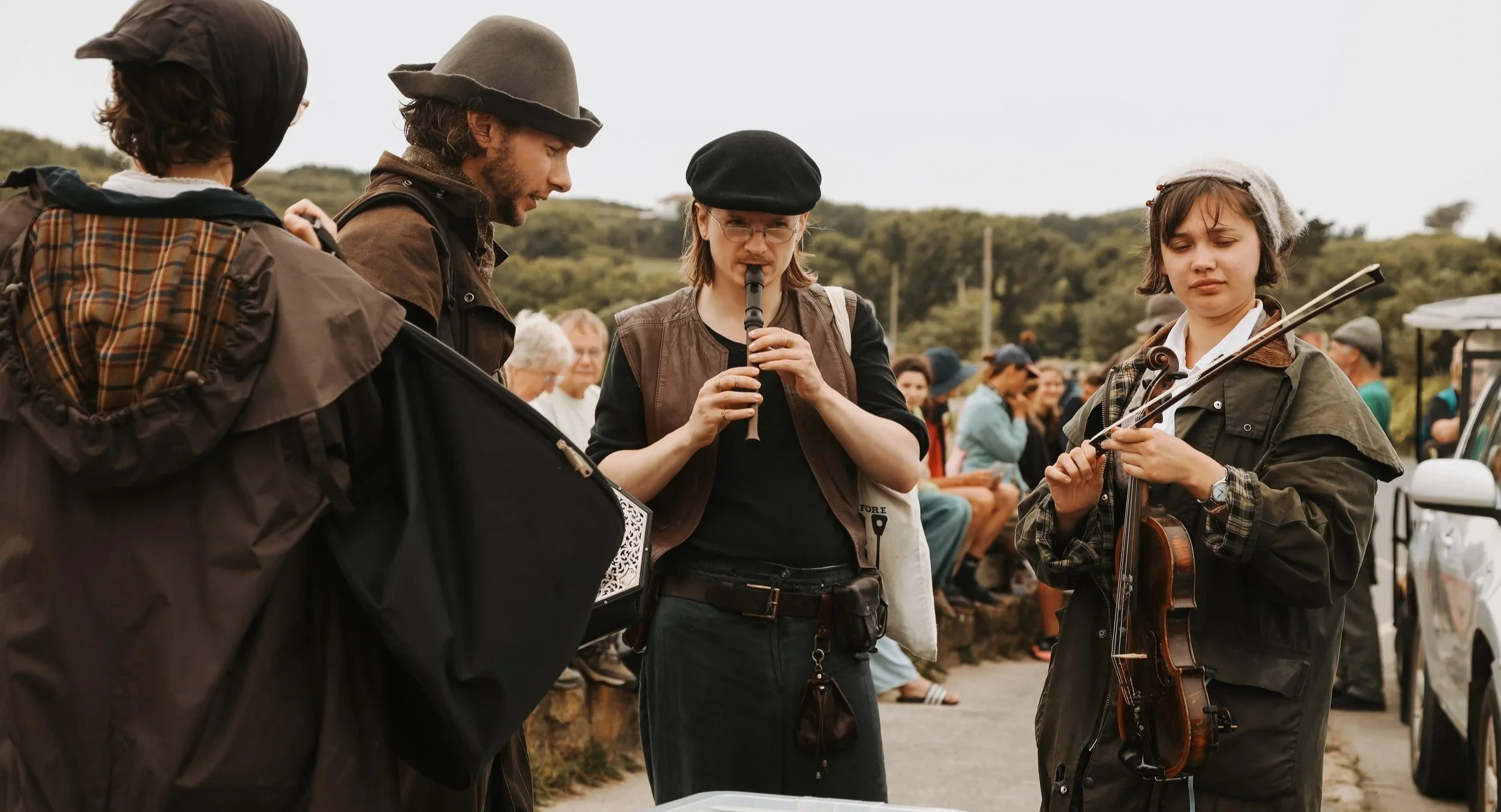 London based folk musicians Goblin Band played traditional English folk music to begin the procession from Old Town Beach out to Giant’s Castle Maze site.