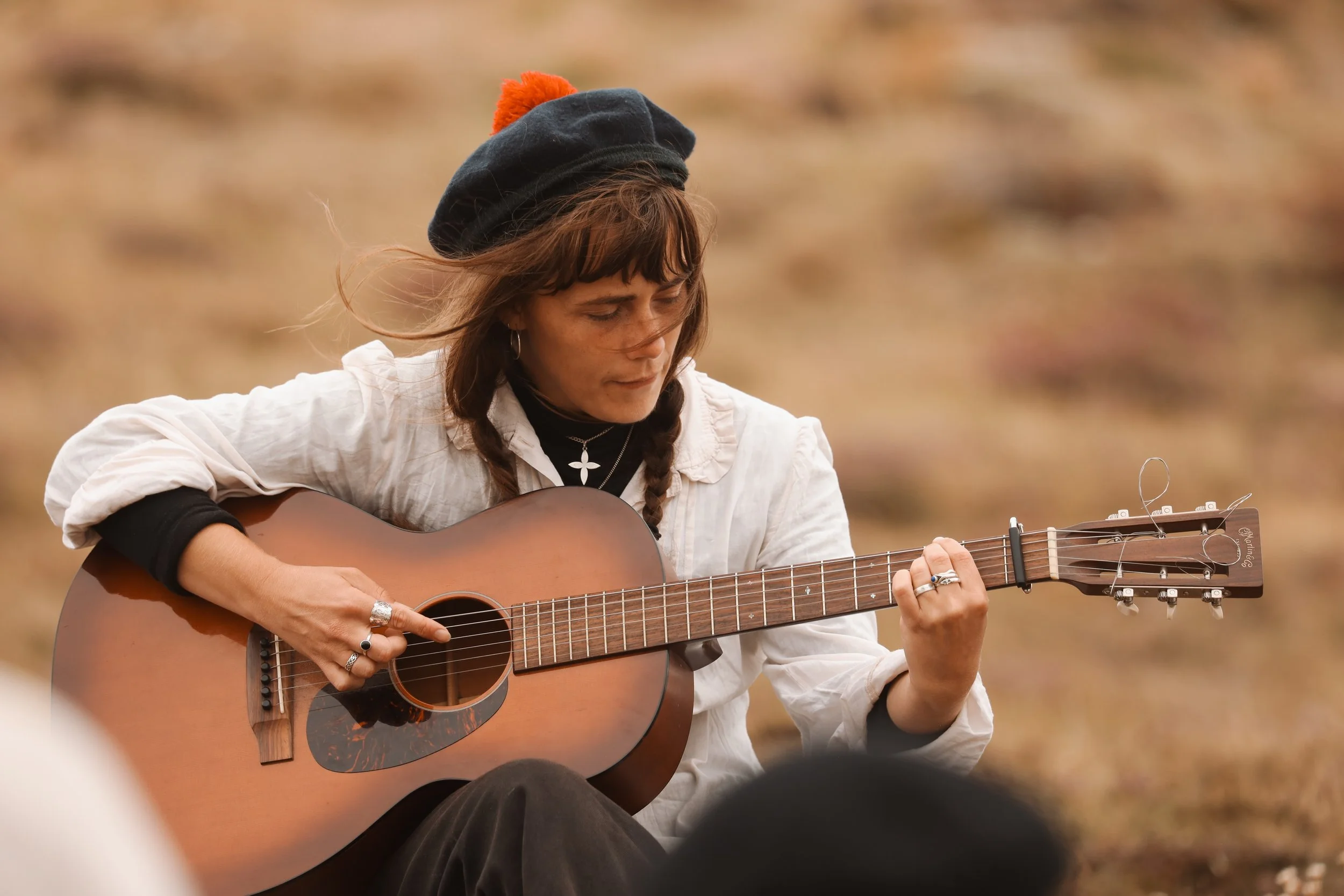 Folk musician Daisy Rickman plays an acoustic version of her song Majestic Sea in the centre of the labyrinth.