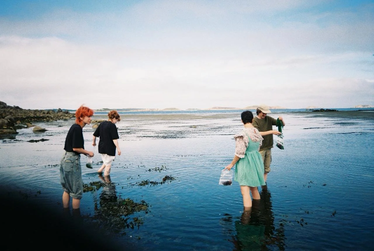 Anaïs, Skye, Teän and Layan foraging edible seaweed at Pelistry Bay.