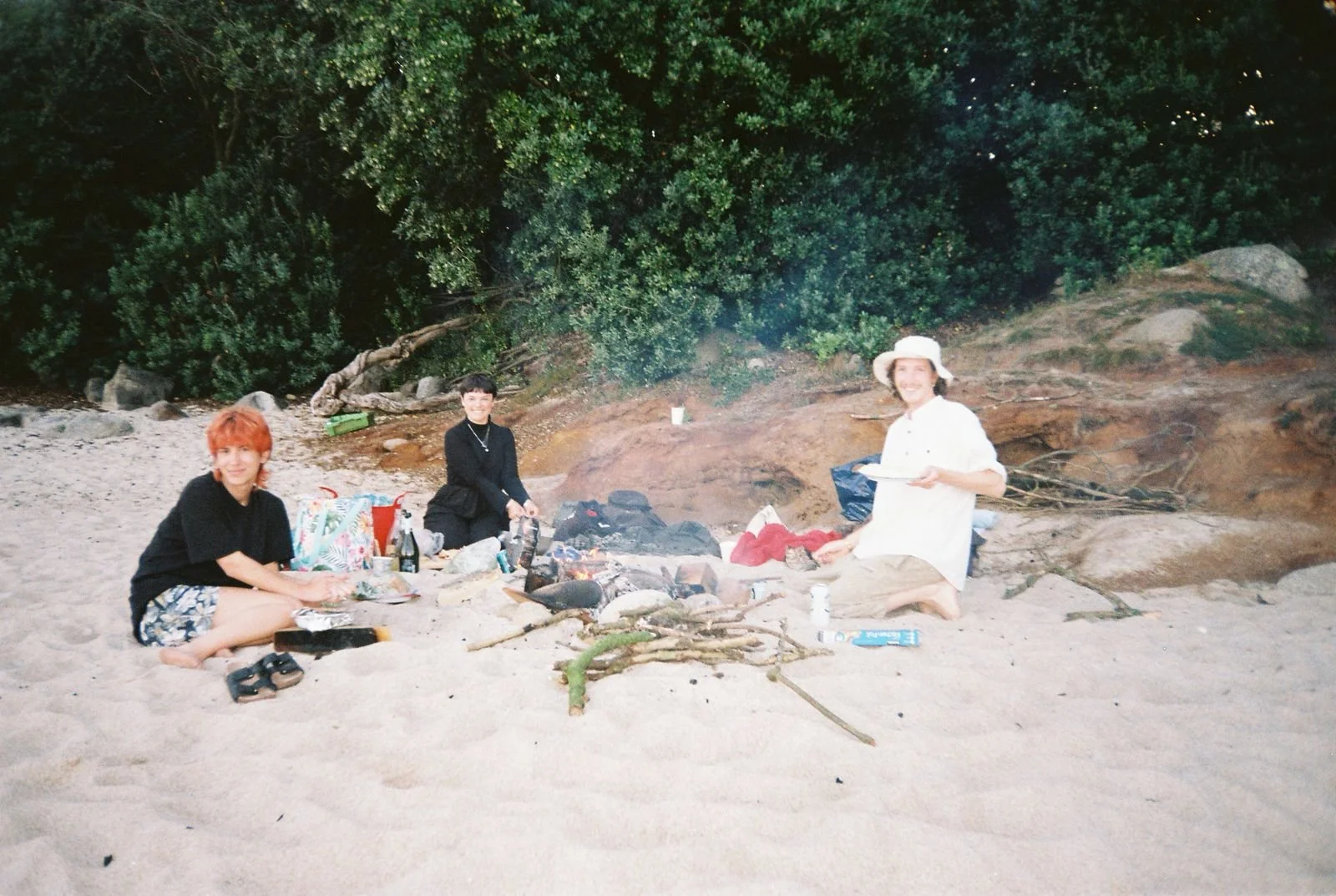 Anaïs, Teän and Layan making beach dinner at Pelistry Bay.