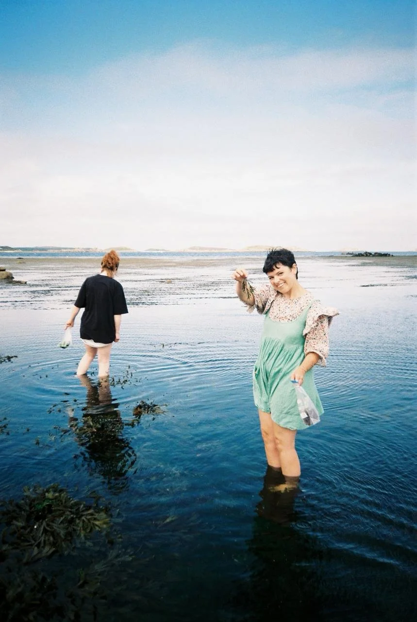 Teän and Layan gatering seaweed.