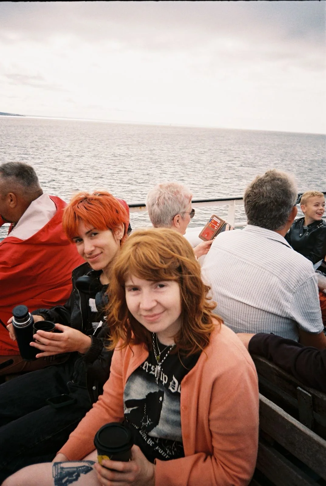 Anaïs and Skye on the top deck of The Scillonian.